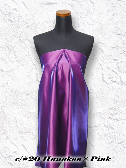 光沢感が特徴的なシャンブレー(縦糸と横糸の色が違う)のサテン素材です。 ※シャンブレー素材の為、角度により色の見え方が異なります。 ※ご注文の際は必ずサンプル帳・店頭ハンガーなどによる現物での確認をお願い致します。