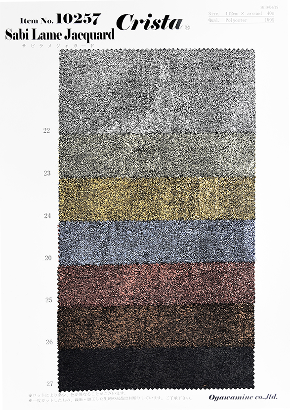 光沢の無いマットラメ糸を使用し、錆びた様なクールな表情のラメジャガードです。