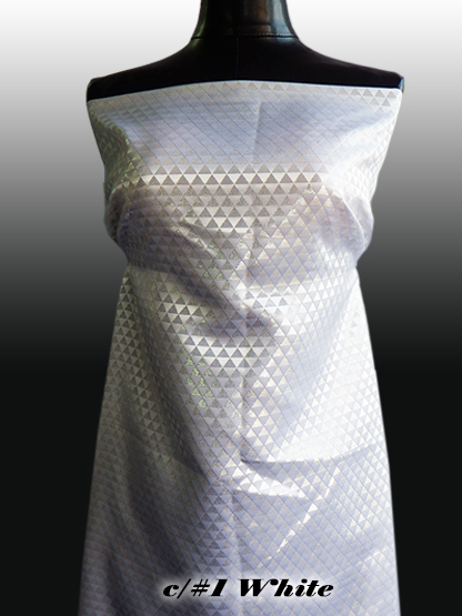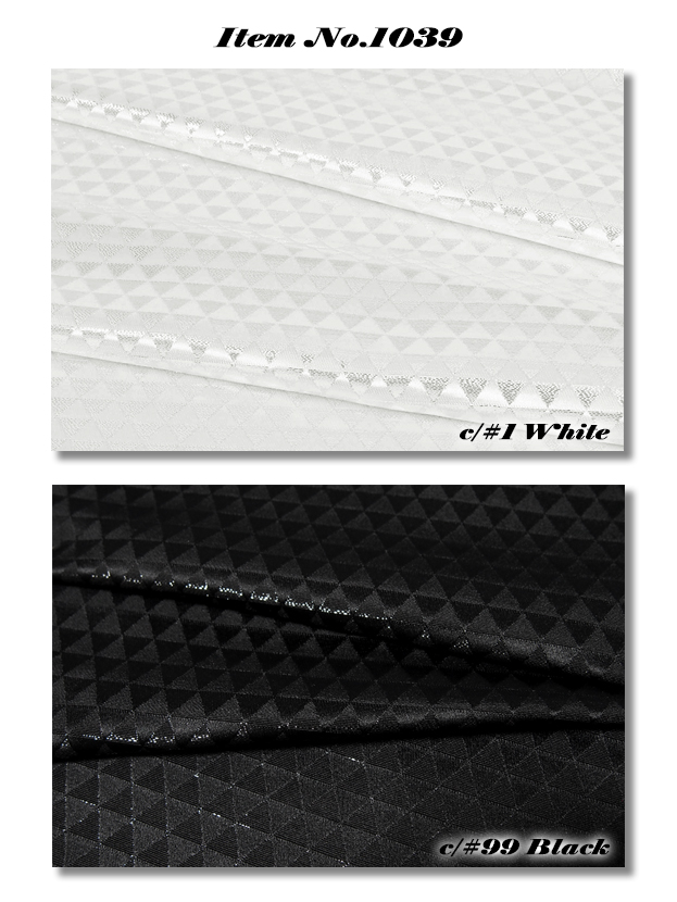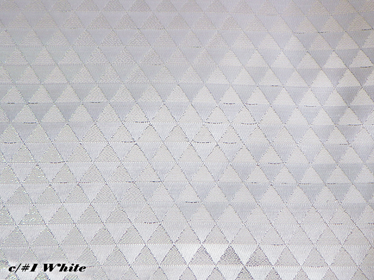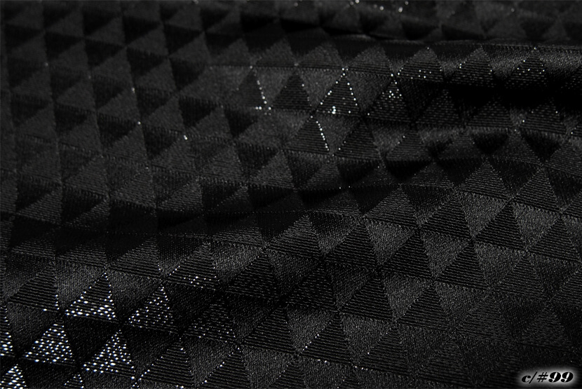 ラメ糸に本銀を使用することにより上品で強い光沢を放つ特徴のデルタ柄のジャガード素材です。 ※生産の都合により規格を変更致しました。(2023.5) ※新色c/#99黒を追加致しました。(2025.1) ※ご注文の際はサンプル帳・店頭ハンガーなどによる現物での色確認をお願い致します。