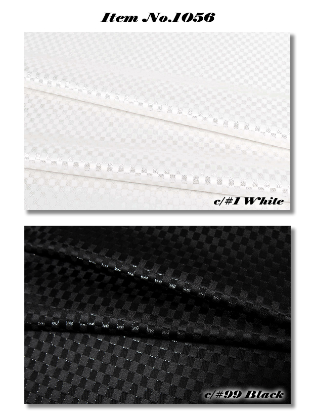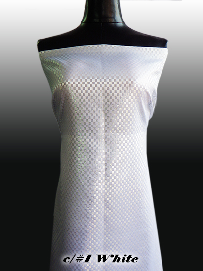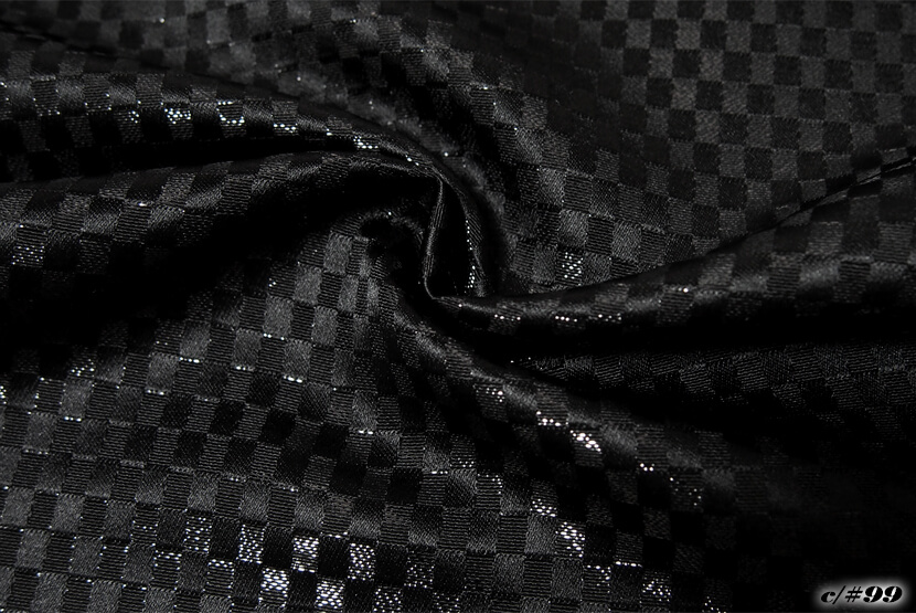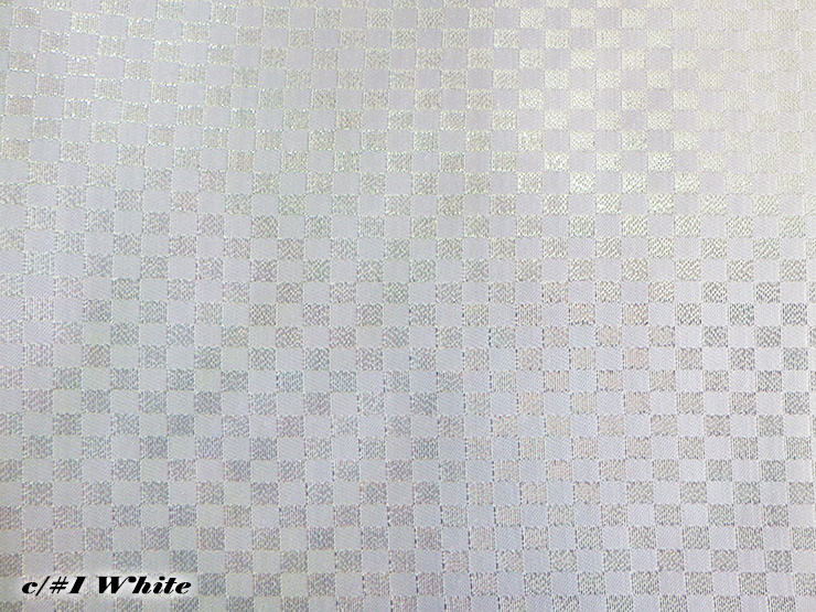 ラメ糸に本銀を使用することにより上品で強い光沢を放つ特徴の市松模様のジャガード素材です。 ※生産の都合により規格を変更致しました。(2023.5) ※新色c/#99黒を追加致しました。(2025.1) ※ご注文の際はサンプル帳・店頭ハンガーなどによる現物での色確認をお願い致します。