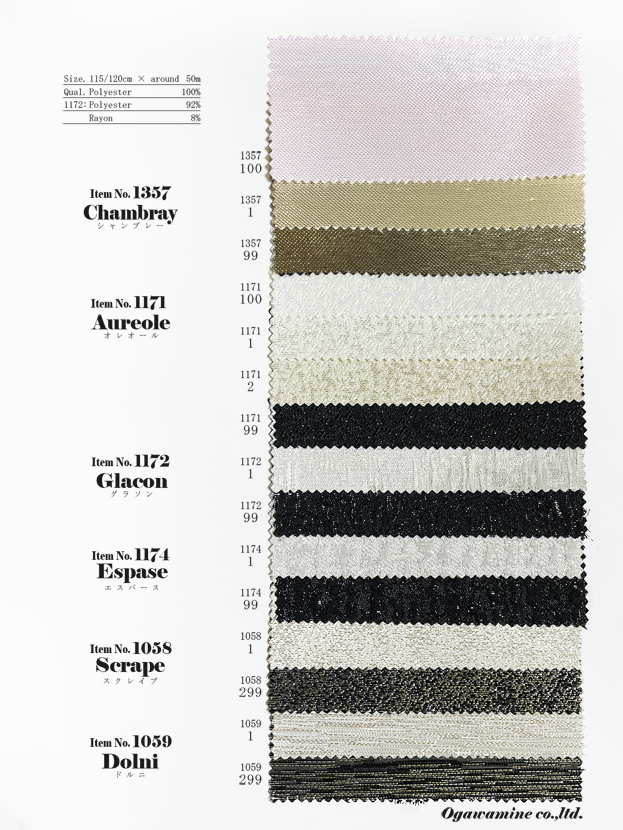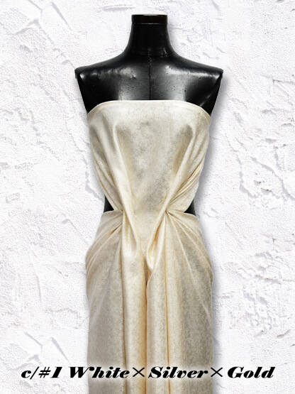 緯糸に本銀とゴールドを使用した砂模様のジャガード素材です。 ※生産の都合により規格を変更致しました。(2023.5) ※新色c/#299を追加致しました。(2025.1) ※ご注文の際はサンプル帳・店頭ハンガーなどによる現物での色確認をお願い致します。