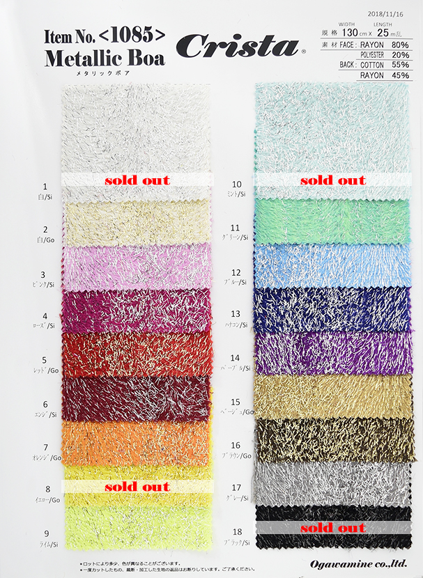 ラメ糸を使用し輝きの強いボア素材を実現しました。各カラーによってシルバーラメとゴールドラメがございます。 全18色のカラー展開となっております。 ※廃番のため在庫無くなり次第終了致します。