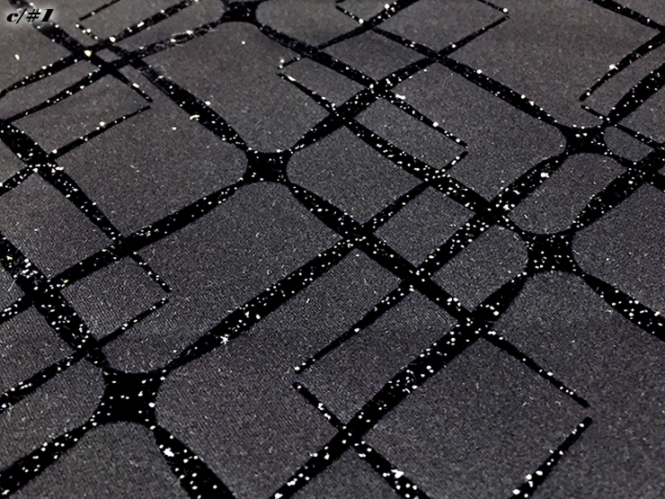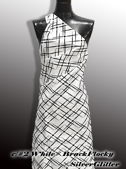 品番1049マルチプルサテンをベースにフロッキー+グリッター加工でチェック柄を施した素材です。