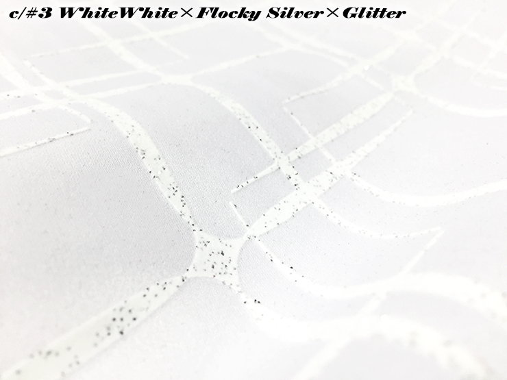 艶やかなサテン生地に立体感のあるフロッキーと上品な輝きのグリッターが特徴的です。