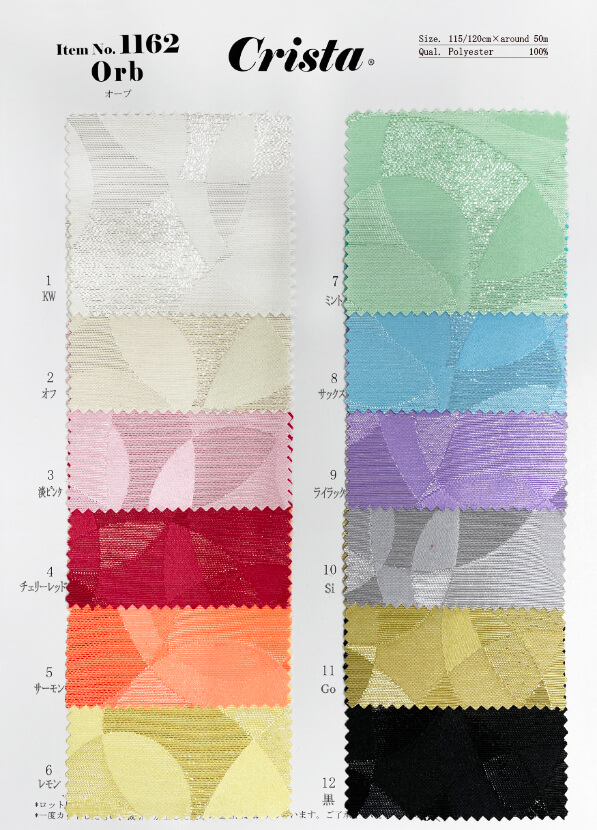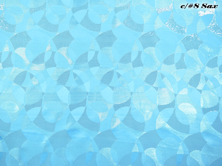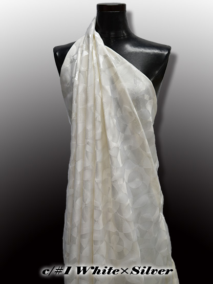 ラメ糸に本銀を使用し上品で強い光沢を放つジャガード素材です。大小のサークルを重ね遠近的に見える柄を施しました。 白シルバーに加え11色のカラー展開を新色追加しました。パステル調の色展開が特徴的です。 ※生産の都合により規格を変更致しました。(2023.5)