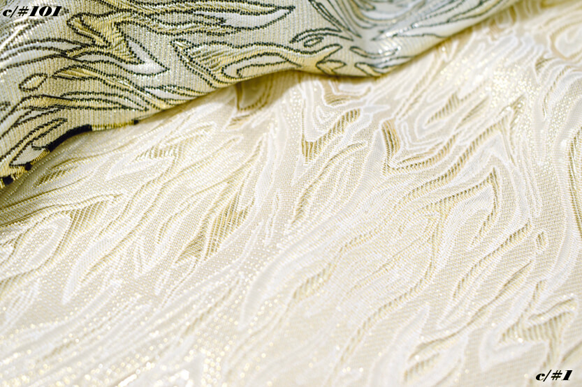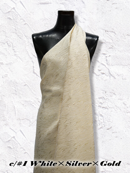ラメ糸に本銀を使用したフクレ織ジャガード素材です。個性のあるエレガントな柄を10柄取り揃えました。(他品番:1057/1163/1164/1165/1166/1167/1168/1170/1181)落ち着きのある色をメーンとした色展開となっております。フクレ織りの凹凸ある表面が存在感を引き立てます。1169は炎のような柄のフクレ織ジャガード素材となります。