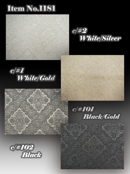 ラメ糸に本銀を使用したフクレ織ジャガード素材です。個性のあるエレガントな柄を10柄取り揃えました。(他品番:1057/1163/1164/1165/1166/1167/1168/1169/1170)落ち着きのある色をメーンとした色展開となっております。フクレ織りの凹凸ある表面が存在感を引き立てます。1181はリボンレースのような柄のフクレ織ジャガード素材となります。