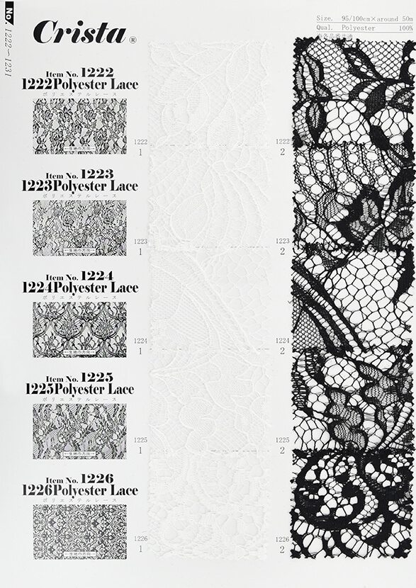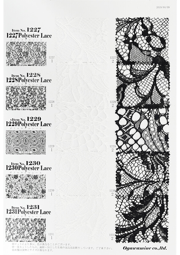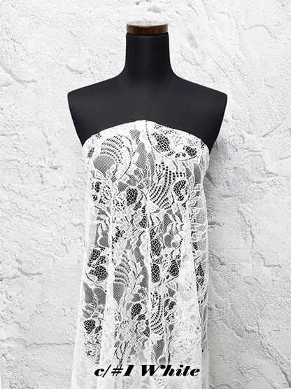 優雅な曲線の花柄のレース素材です。#1白は転写プリントも可能です。