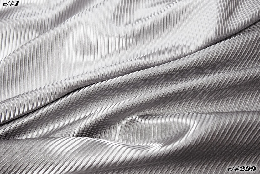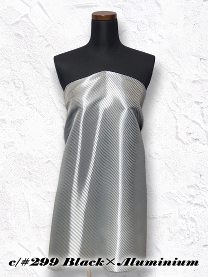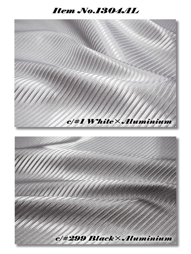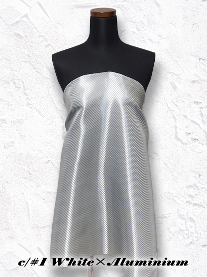 ツヤ感とハリ感が特徴のカルゼ柄ジャガード素材の片面にアルミメタル加工(スパッタリング)を施しました。