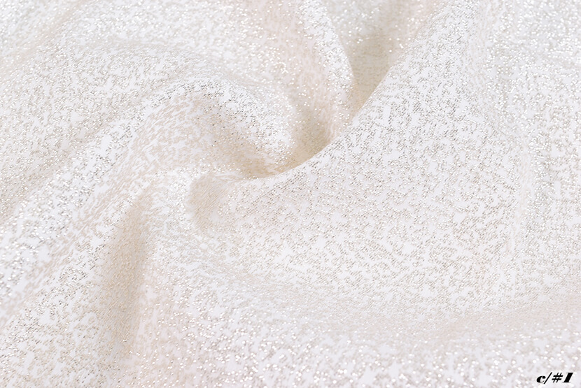 純銀のラメ糸による独特の光沢感と、ストレッチ性を兼ね備えた斑模様のラメ素材です。