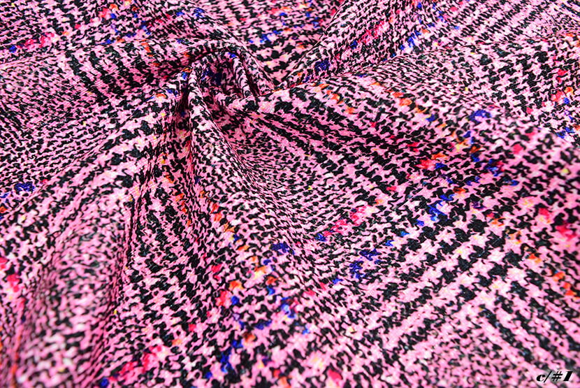 グラフィックデザインで表現された格子状のマルチカラーのネップが特徴です。