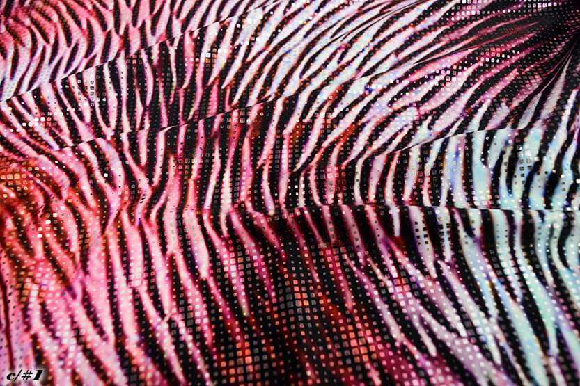 品番933 2WAYドットクリスタルc/#909の独特なテクスチャ の箔加工生地をベースにプリントを施し、より粒子らしさと不思議なイメージを表現しています。