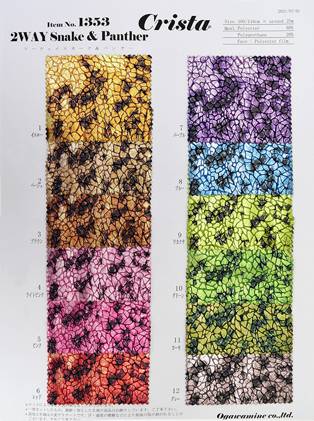蛇柄と豹柄をミックスさせたリアルなアニマル柄が特徴的な素材です。