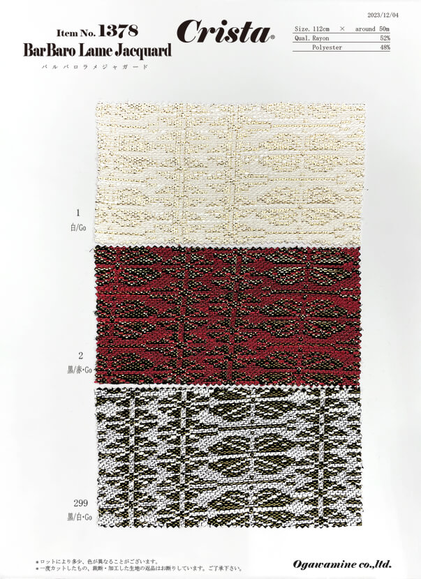 ふっくらとした質感と立体感のある表情が特徴的なラメジャガードです。 ※ご注文の際はサンプル帳・店頭ハンガーなどによる現物での確認をお願いいたします。