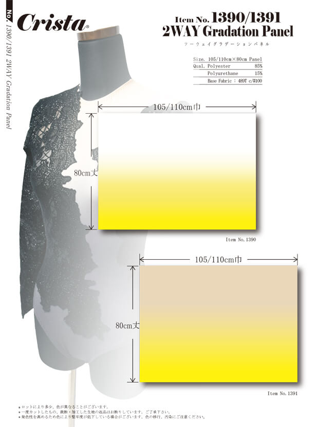 ※発色性を高めるためロット・色により堅牢度が低下している場合がございます。色の移行、汚染にご注意ください。