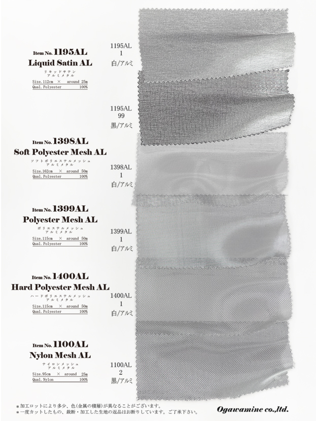 柔らかいメッシュ素材の片面にアルミメタル加工(スパッタリング)を施しました。