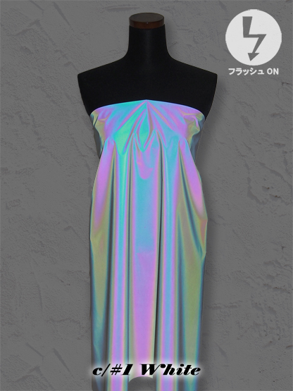 特殊な再帰性反射材”LIGHT FORCE®︎”オーロラリフレクターです。 フラッシュ撮影することにより虹色に光ります。 ※光り方や色の見え方は撮影環境により異なります。 ※ご注文の際はサンプル帳・店頭ハンガーなどによる現物での確認をお願い致します。