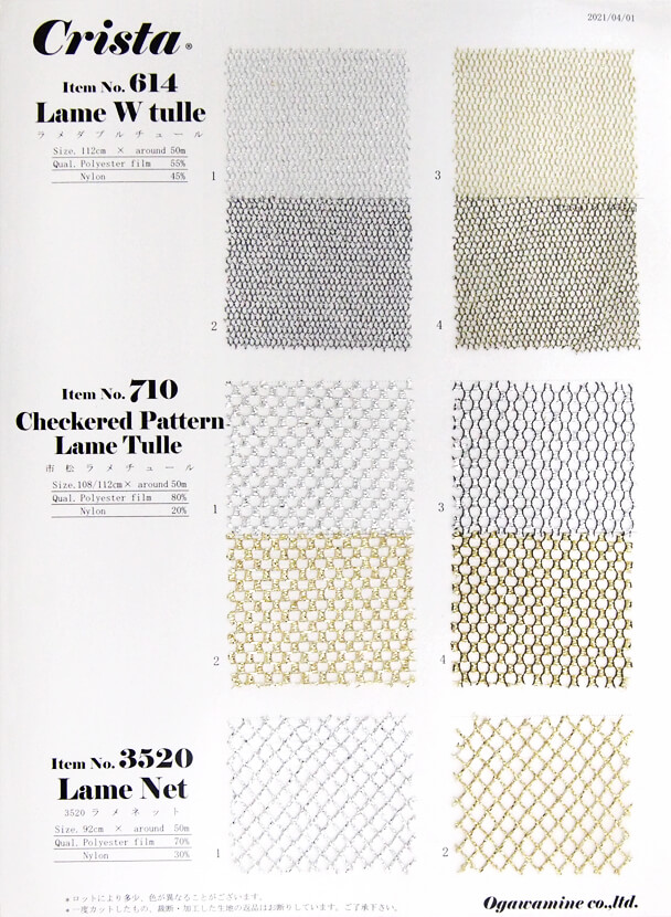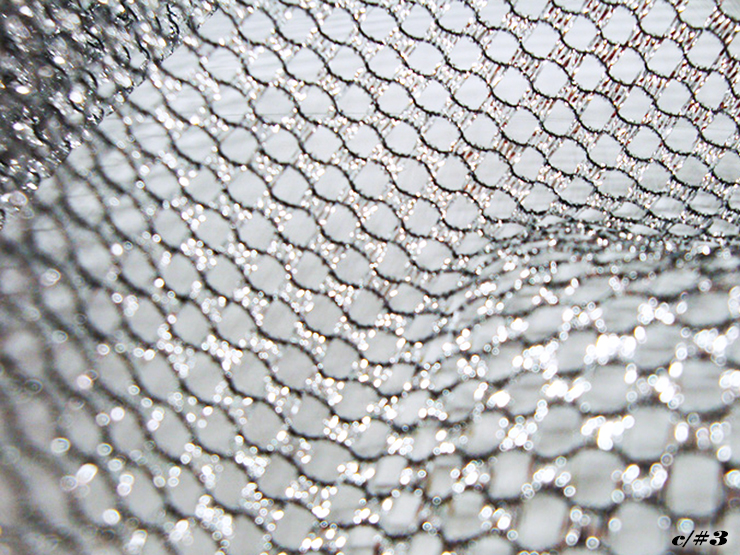 ラメ糸を使用した、目の穴が楕円のようなチュールです。