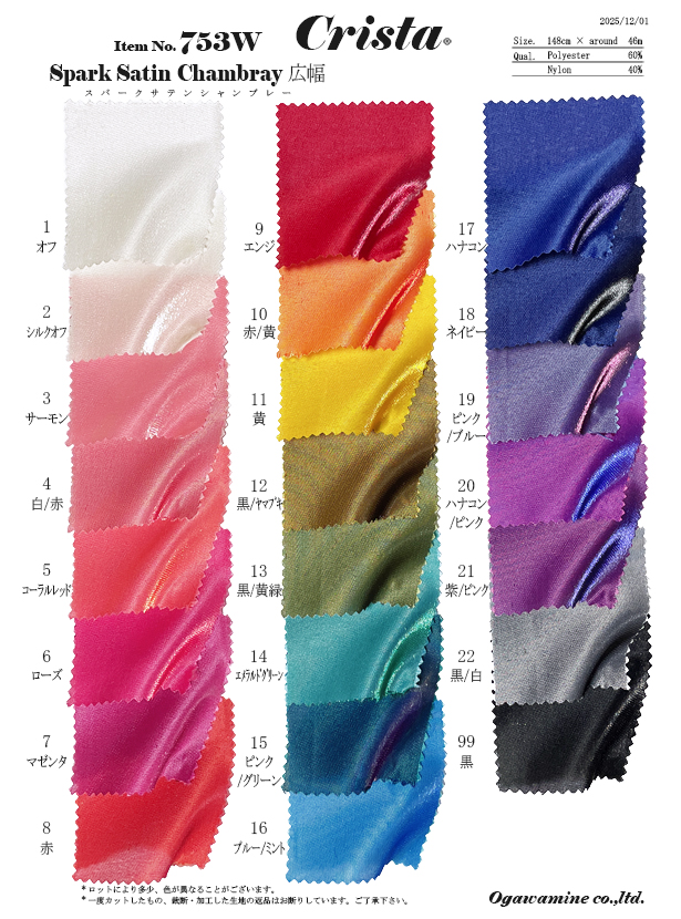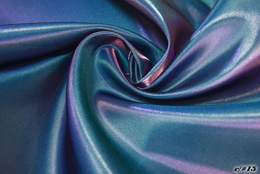 光沢感が特徴的なシャンブレー(縦糸と横糸の色が違う)のサテン素材です。 ※シャンブレー素材の為、角度により色の見え方が異なります。 ※ご注文の際は必ずサンプル帳・店頭ハンガーなどによる現物での確認をお願い致します。