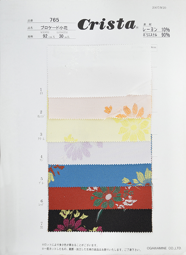 花柄のジャガードです。 縦糸と横糸のカラー+ジャガード織にて複雑な柄を表現した、先染めの織物です。 チャイナドレスなどに使用されます。 ※廃番商品の為、在庫無くなり次第終了致します。