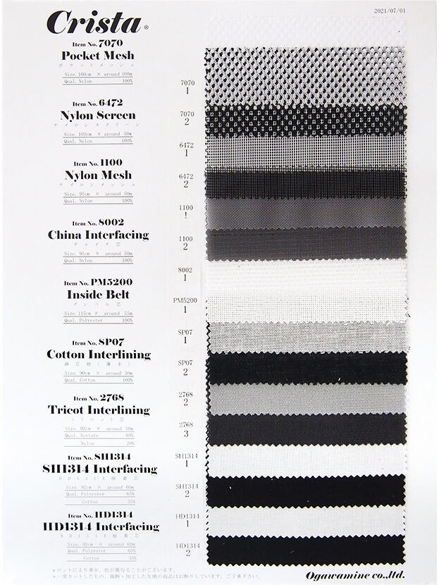 チャイナ服の衿などに使用される、硬さのある芯地です。