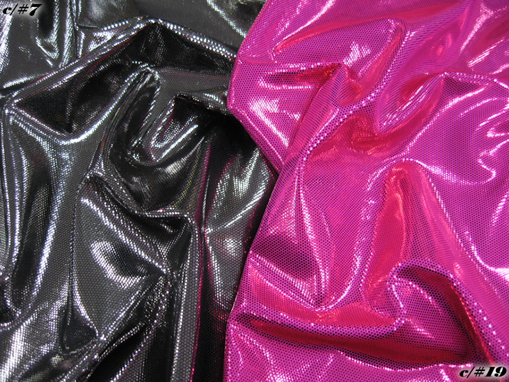 489 2WAYトリコット にドットの箔加工を施した素材です。箔加工の中でもさらに光沢感の強い加工です。