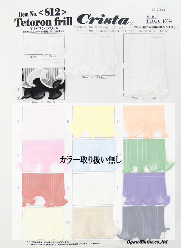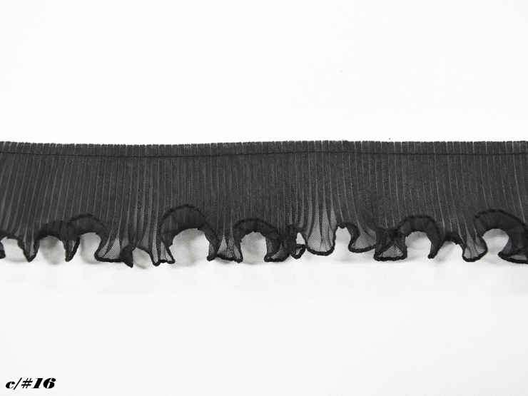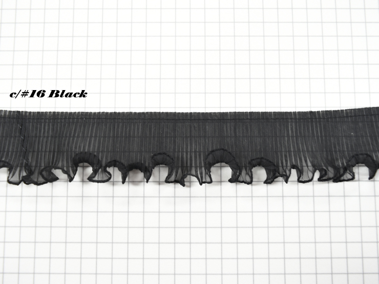 50mm巾のテトロンフリルです。 c/#1 白・c/#16 黒のみのお取り扱いとなります。 ※1反単位での販売となります。カット販売はしておりません
