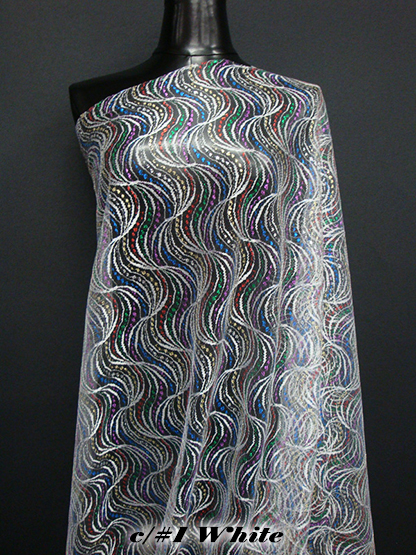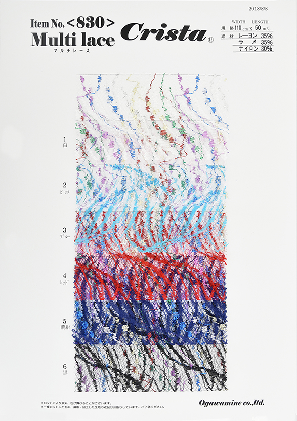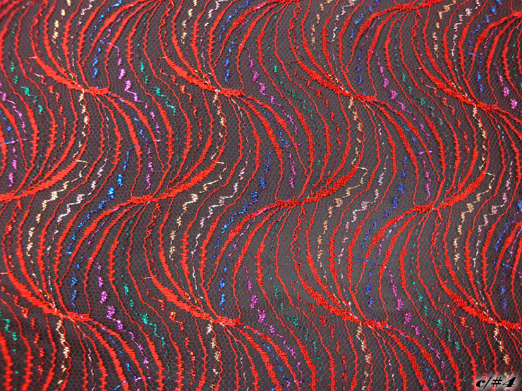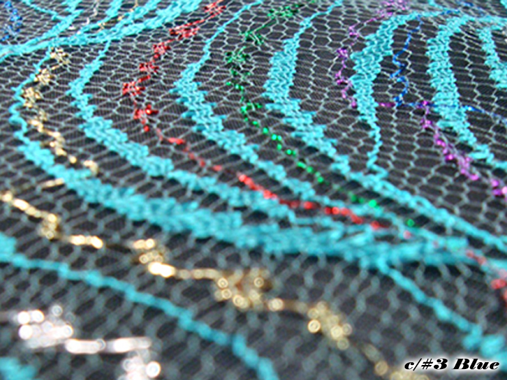 マルチカラーのラメ糸を織り込んだ、波柄のレースです。