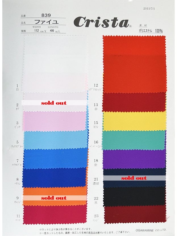 しっとりとしたドレープのきれいに出る生地です。フラメンコなどに使用されます。 ※サンプル帳はc/#1白みのご用意になります。カラーのご用意はございませんので予めご了承ください。 ※c/#1白・c/#22黒以外のカラーは廃番のため、在庫なくなり次第終了致します。
