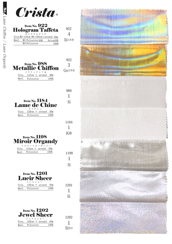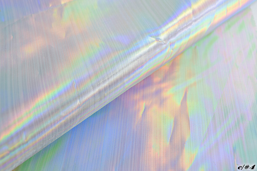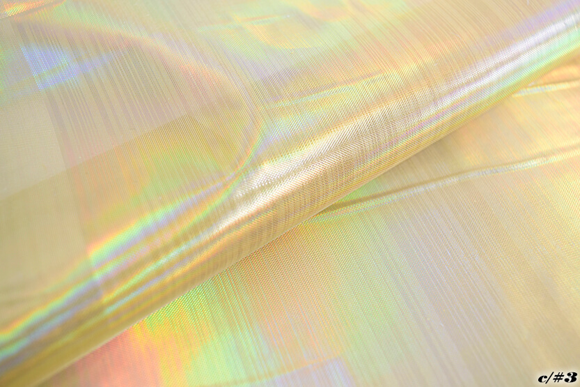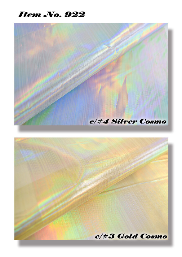 ホログラムに輝くタフタ素材です。 c/#3ゴールドコスモは110cm巾、c/#4シルバーコスモは140cm巾規格となります。