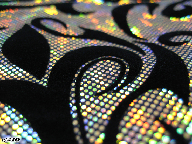 フロッキーと箔加工の質感のコントラストがお互いを引き立てます。