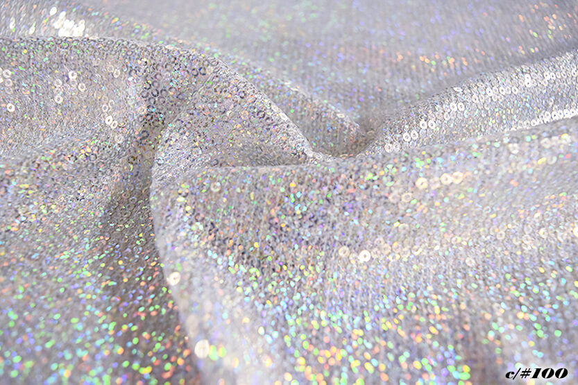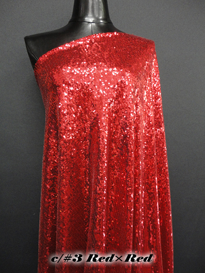 生地巾に対して平行にストレッチ性のあるメッシュ生地に、約1mmの小さなスパンコールを全面に刺繍した素材です。