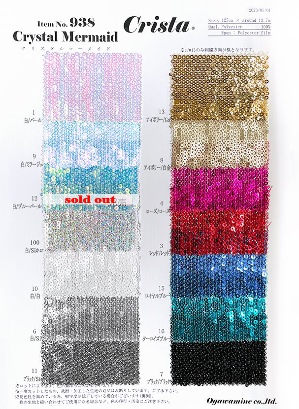 角度により光を強く反射するため、大き目のスパンコールとはまた違った光沢感となります。