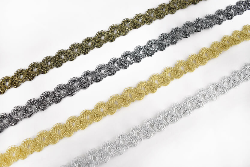 様々なデザインに組み合わせやすい1.5cm巾のラメブレードです。存在感のある柄が特徴的です。