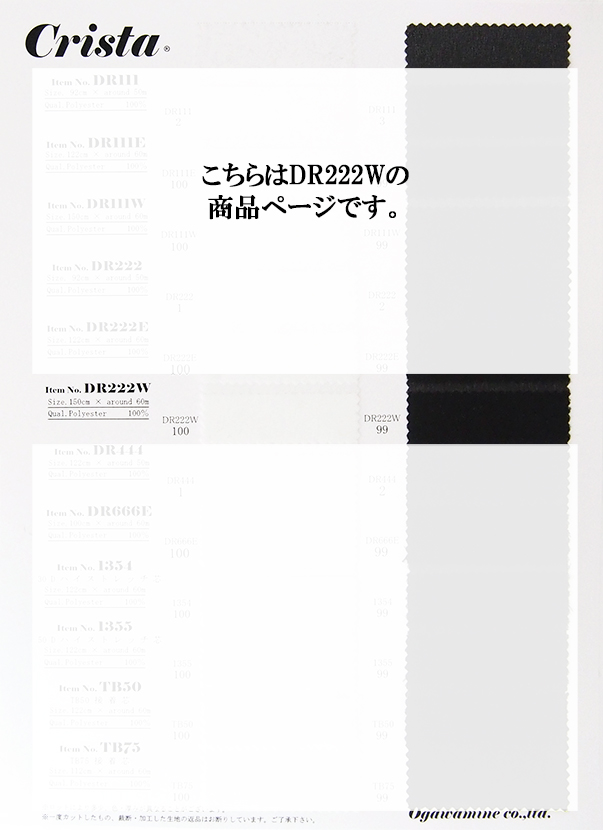 DR222接着芯の広幅(150cm)タイプで、c/#100オフ・c/#99黒の2色展開です。