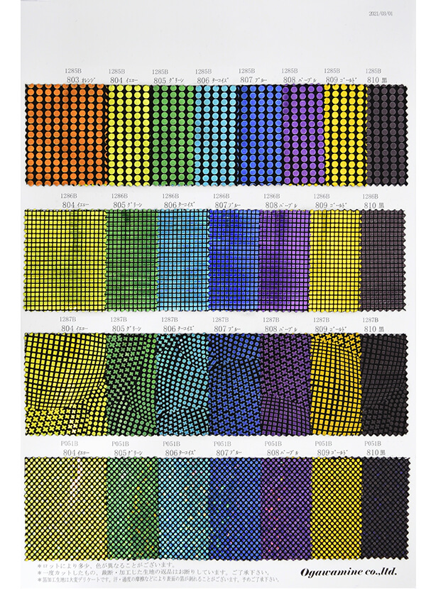 2WAYストレッチ素材をベースに、ドット状にホログラム箔を加工を施しています。