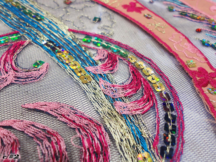 むら染めのチュールベースにポセイドンをイメージした特殊な刺繍を施した豪華な素材です。 ※限定商品のため在庫限りになります。