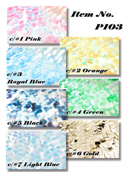 スパンコールはカラーオーロラで角度によって色の見え方が異なり非常にきれいです。