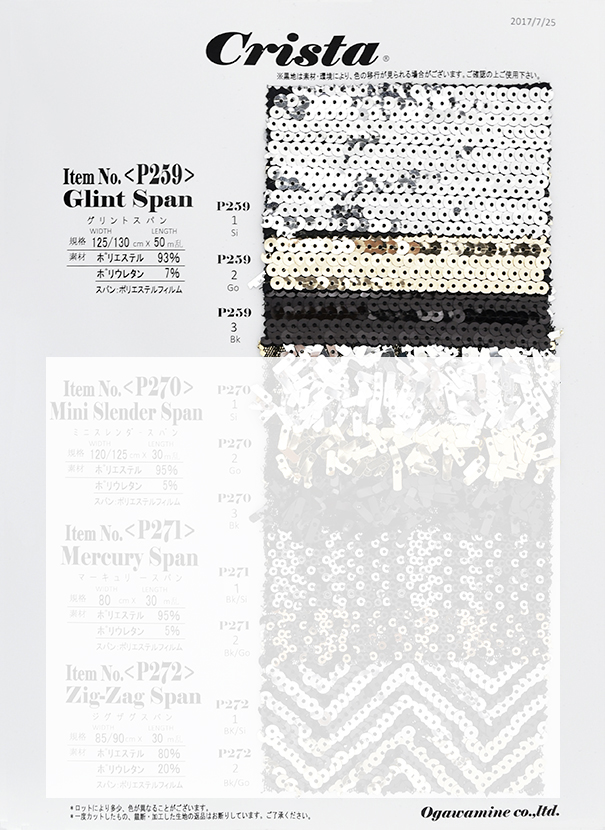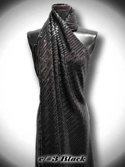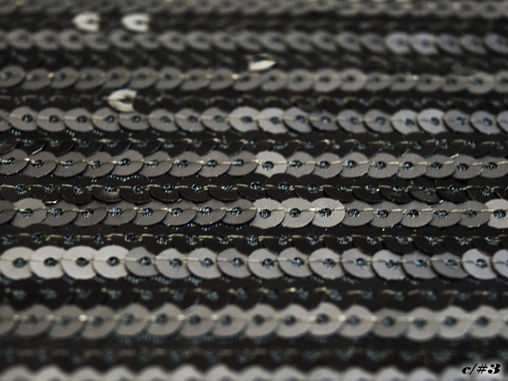 1列ずつスパンコールを刺繍する方向が異なることで、変化のある光沢が特徴的なスパンコール素材です。