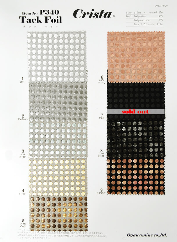 ※箔加工生地は大変デリケートです。汗、摩擦などにより表面の箔が剥がれる事がございます。予めご了承ください。