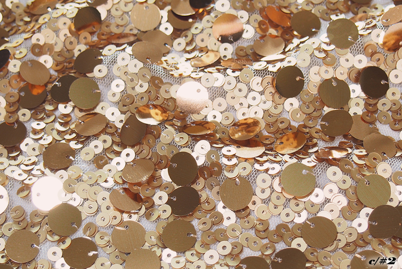 光沢の異なるスパンコールのコンビネーションが特徴的です。