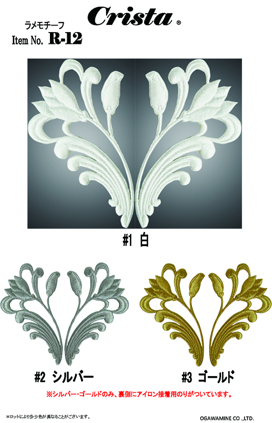 白・シルバー・ゴールドの3色展開のラメモチーフです。 シルバー・ゴールドはアイロン接着タイプになります。 ※10組セット販売は終了いたしました。