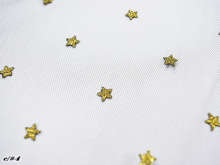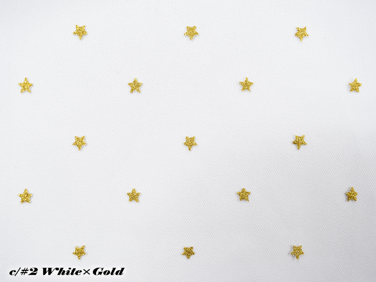ソフトチュールにラメフロッキー星(直径約2.5mm)をふきつけた素材です。 ※汗・摩擦などによりグリッター・フロッキーが剥がれる場合がございます。予めご了承ください。
